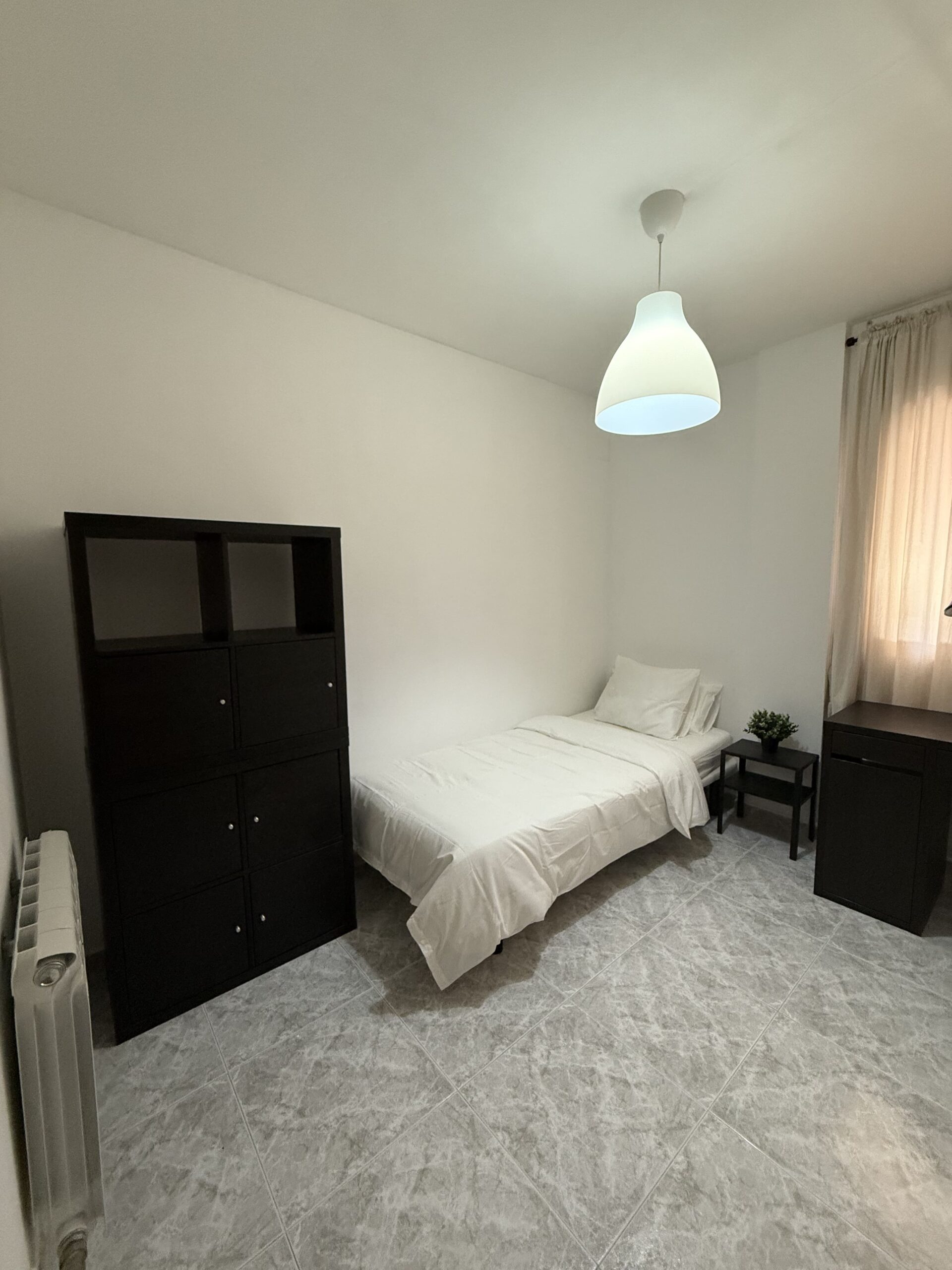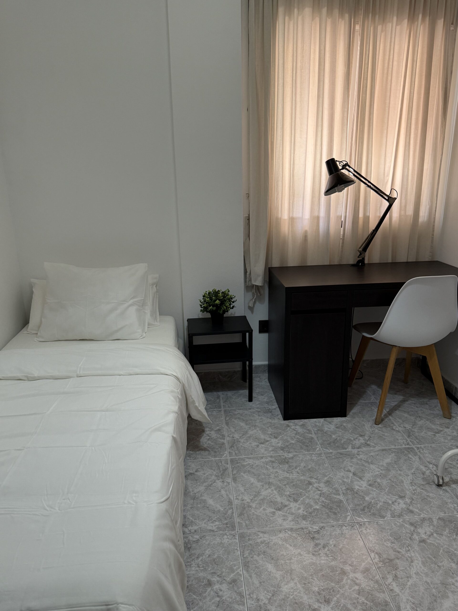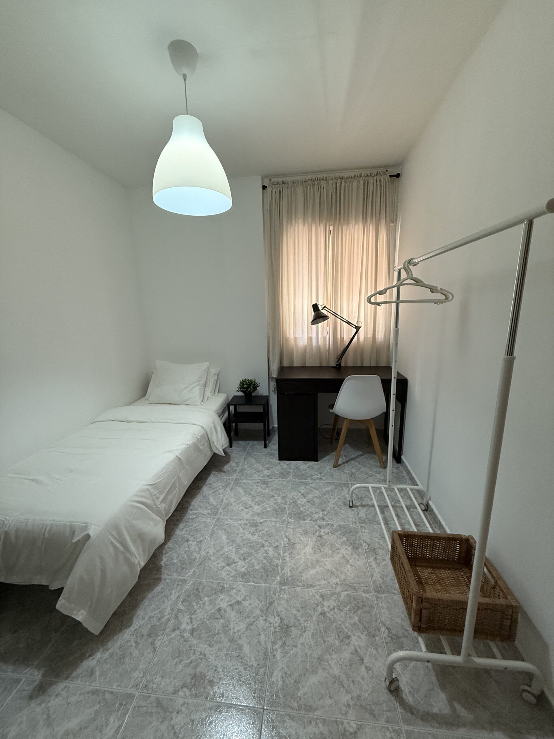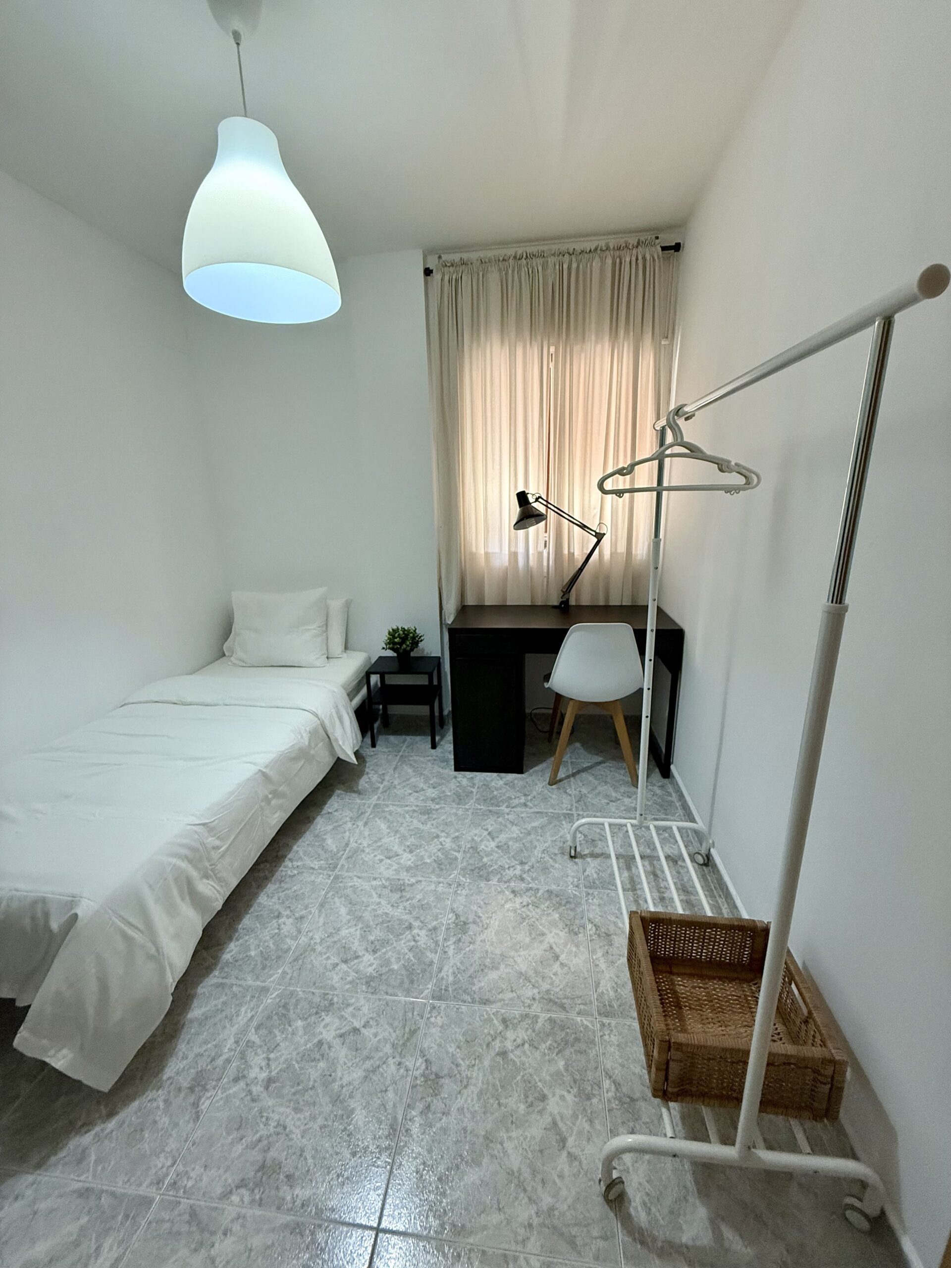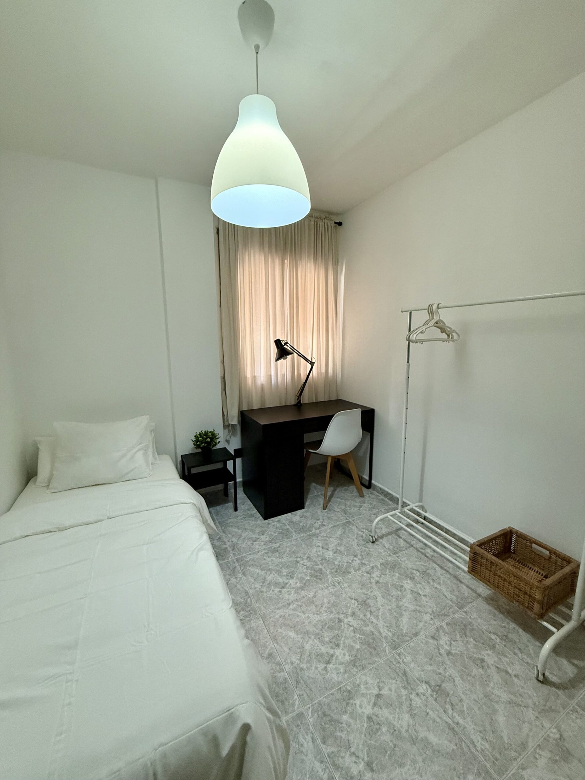 Private single room in a 105 m² apartment. The owners have decorated the apartment with great taste. It has 4 bedrooms in total and 2 full bathrooms. Central heating, air conditioning, ceiling fan in the living room, air distributors in all rooms, Smart TV, internet connection, elevator, two balconies, and a gallery. Fully equipped kitchen (oven, fridge, induction hob, microwave, toaster, coffee maker, etc.) and washing machine.