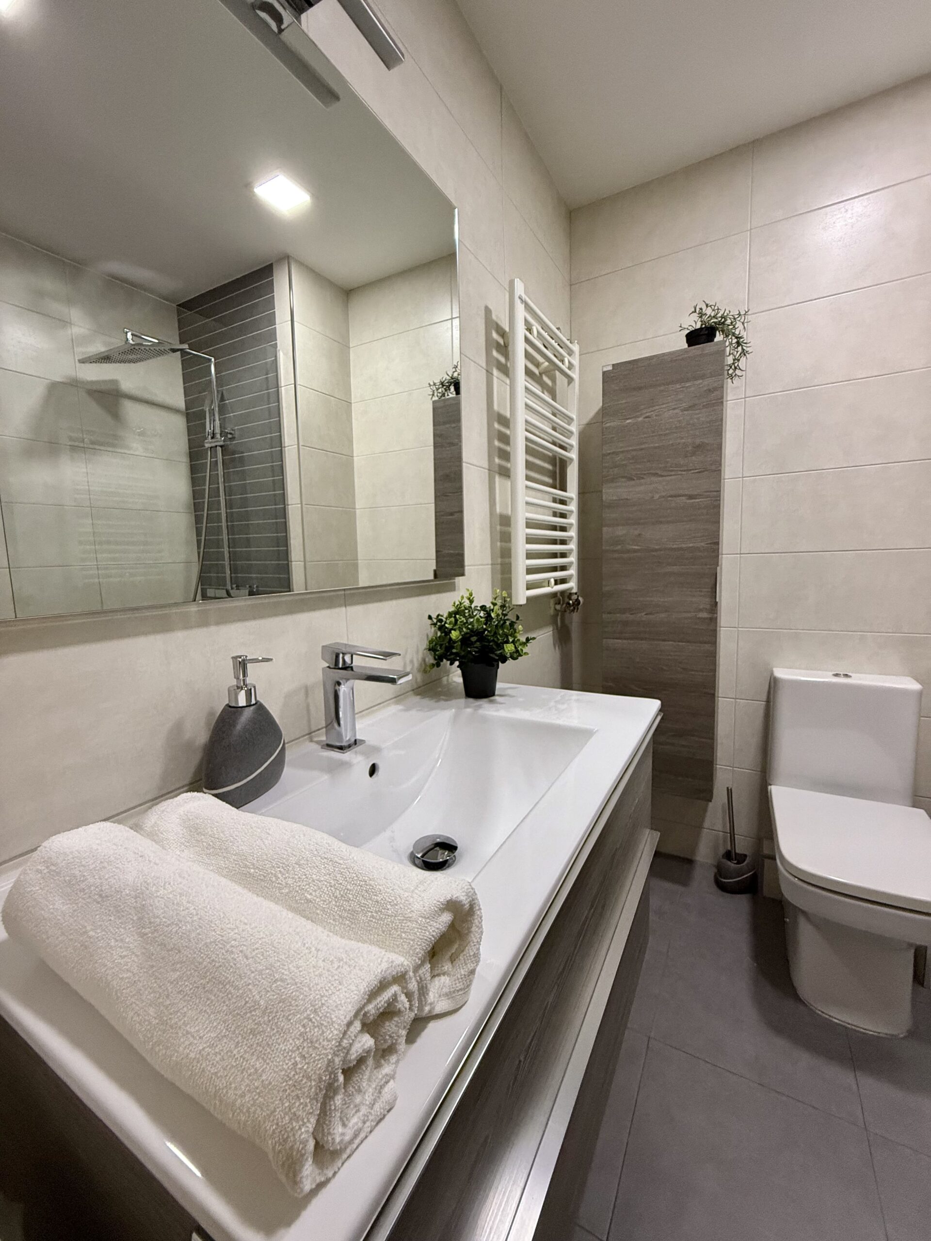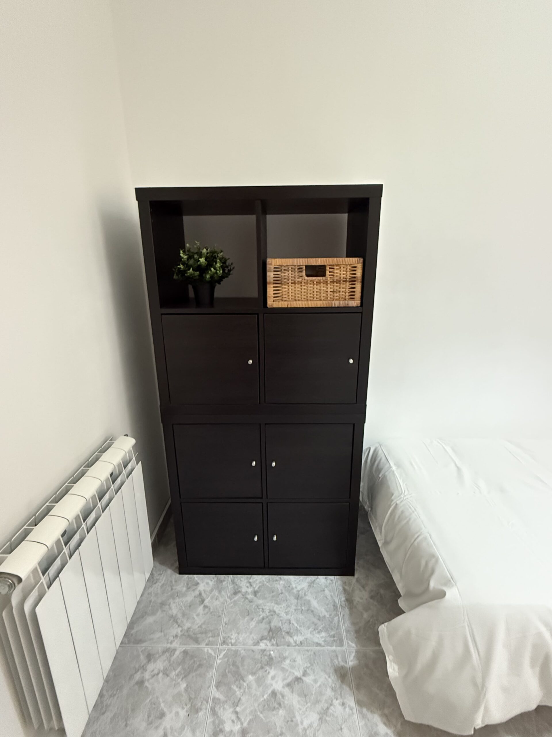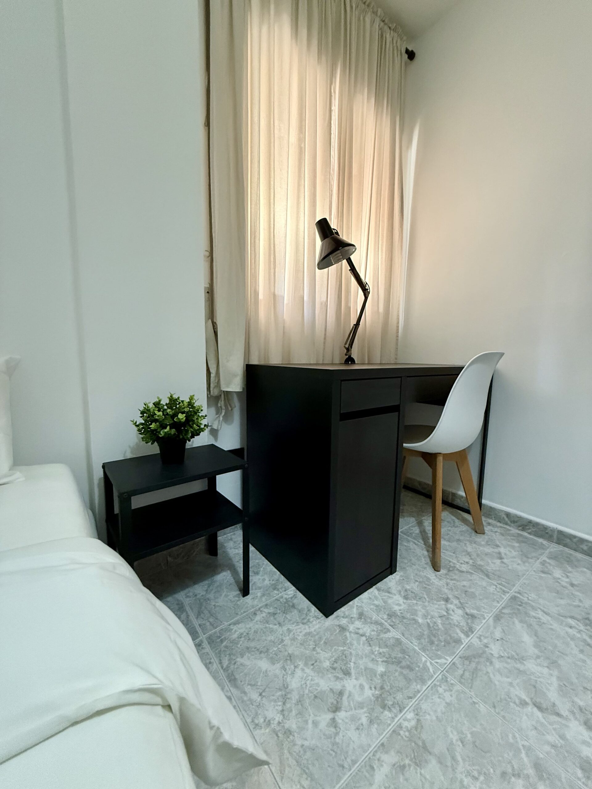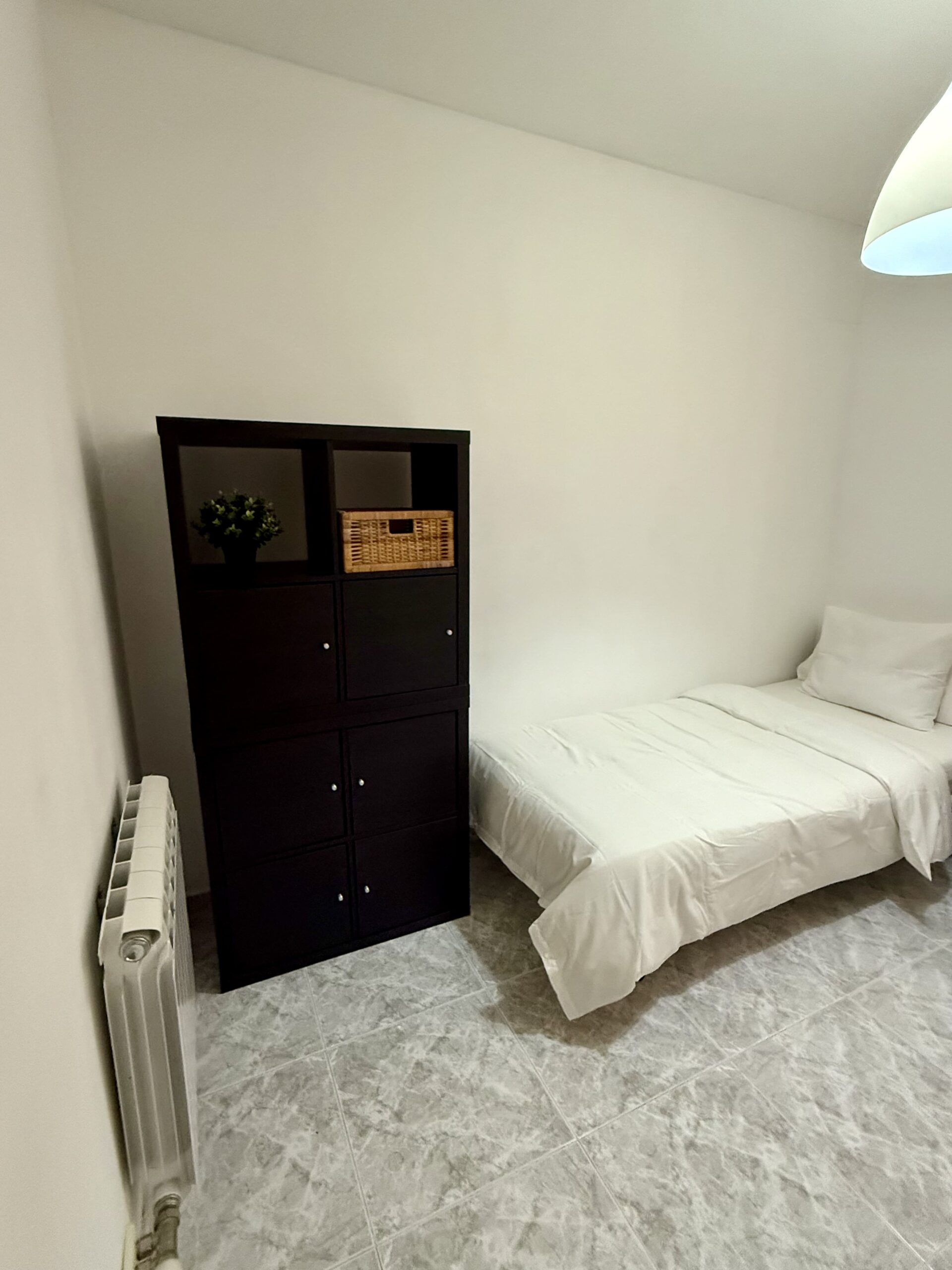 Private single room in a 105 m² apartment. The owners have decorated the apartment with great taste. It has 4 bedrooms in total and 2 full bathrooms. Central heating, air conditioning, ceiling fan in the living room, air distributors in all rooms, Smart TV, internet connection, elevator, two balconies, and a gallery. Fully equipped kitchen (oven, fridge, induction hob, microwave, toaster, coffee maker, etc.) and washing machine.