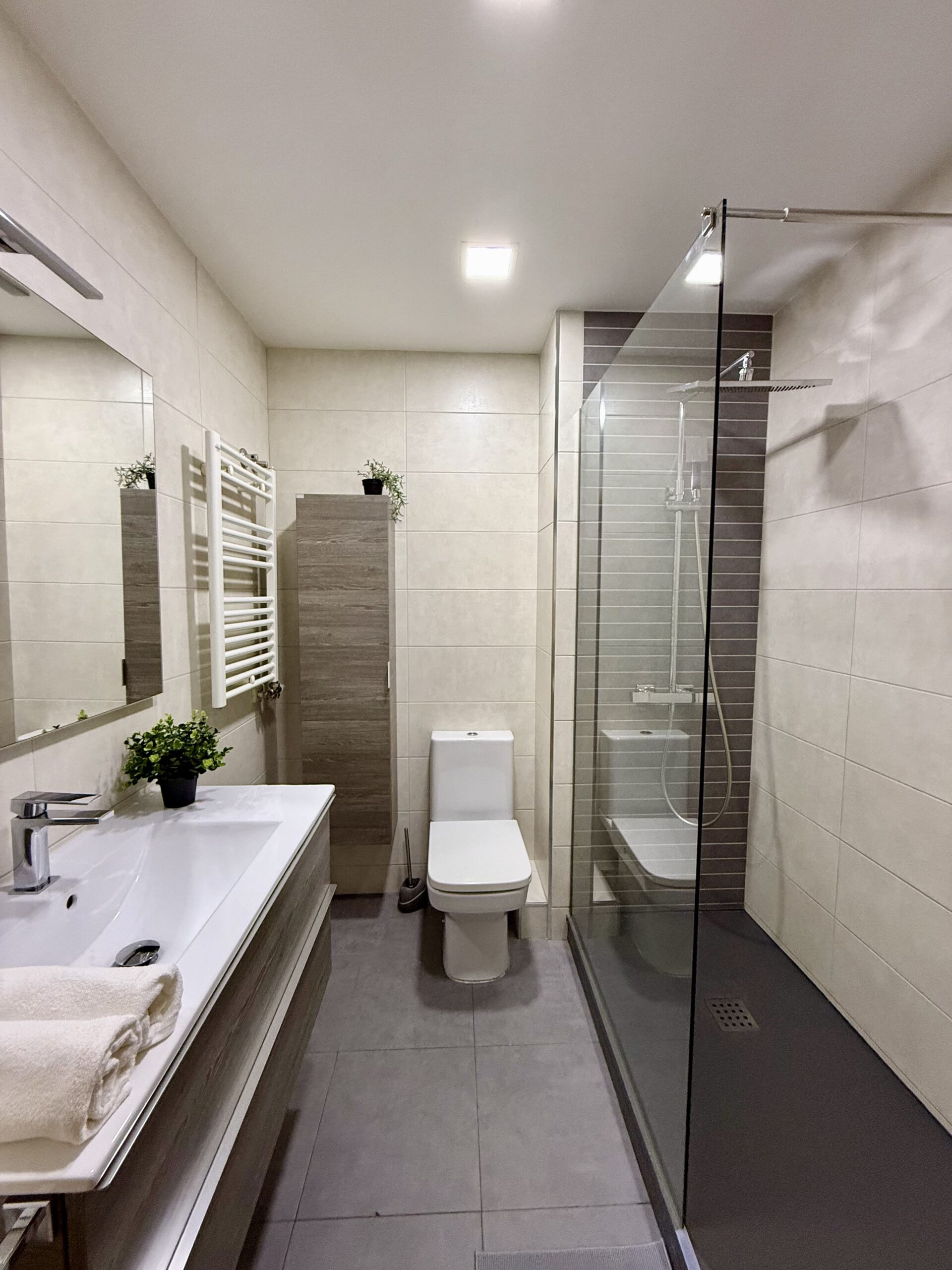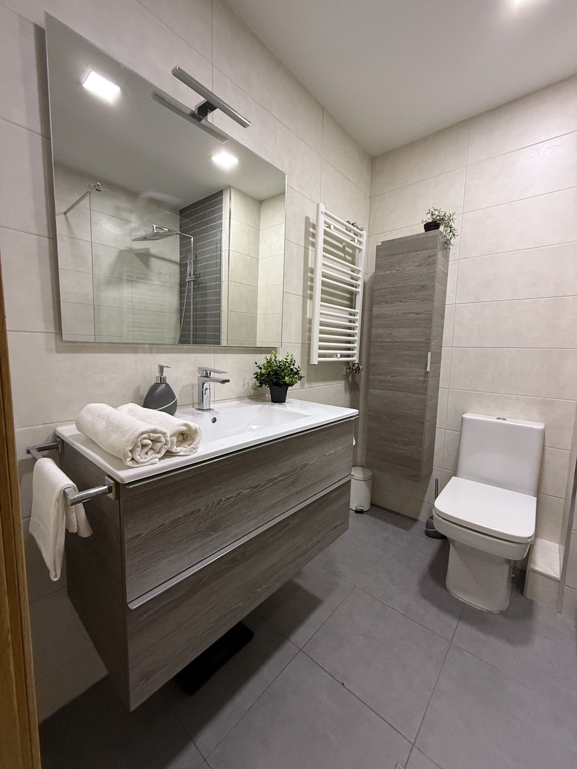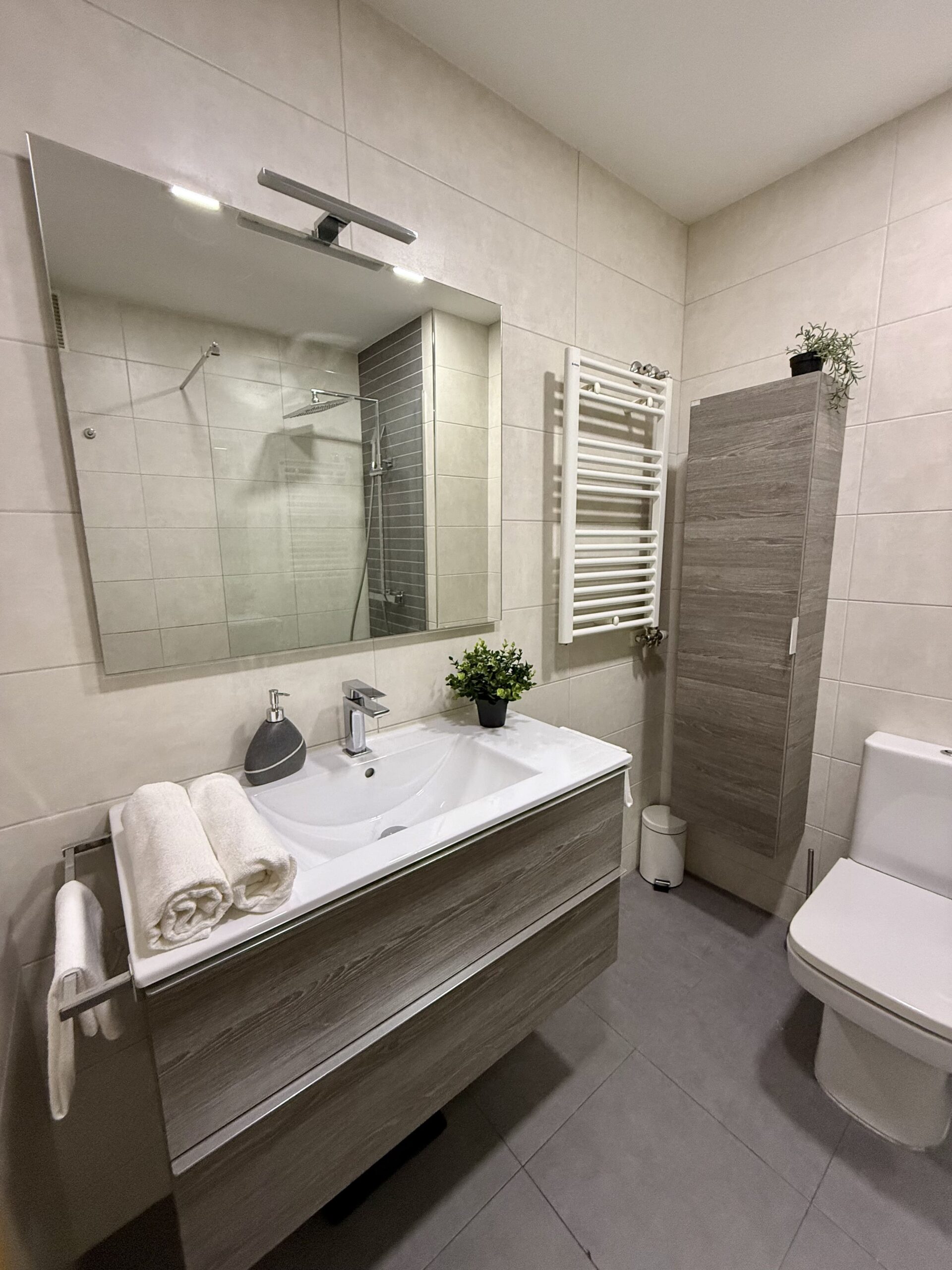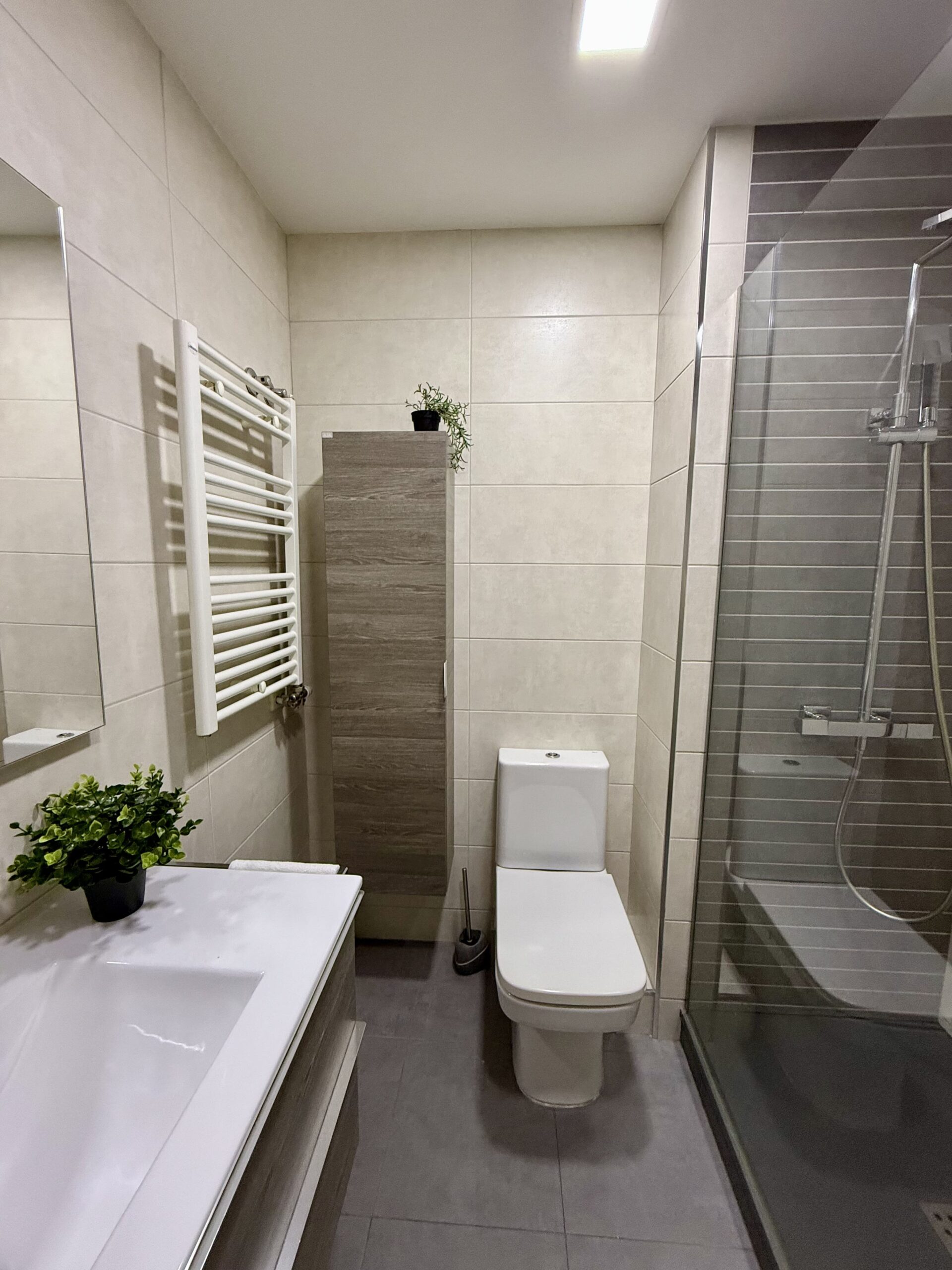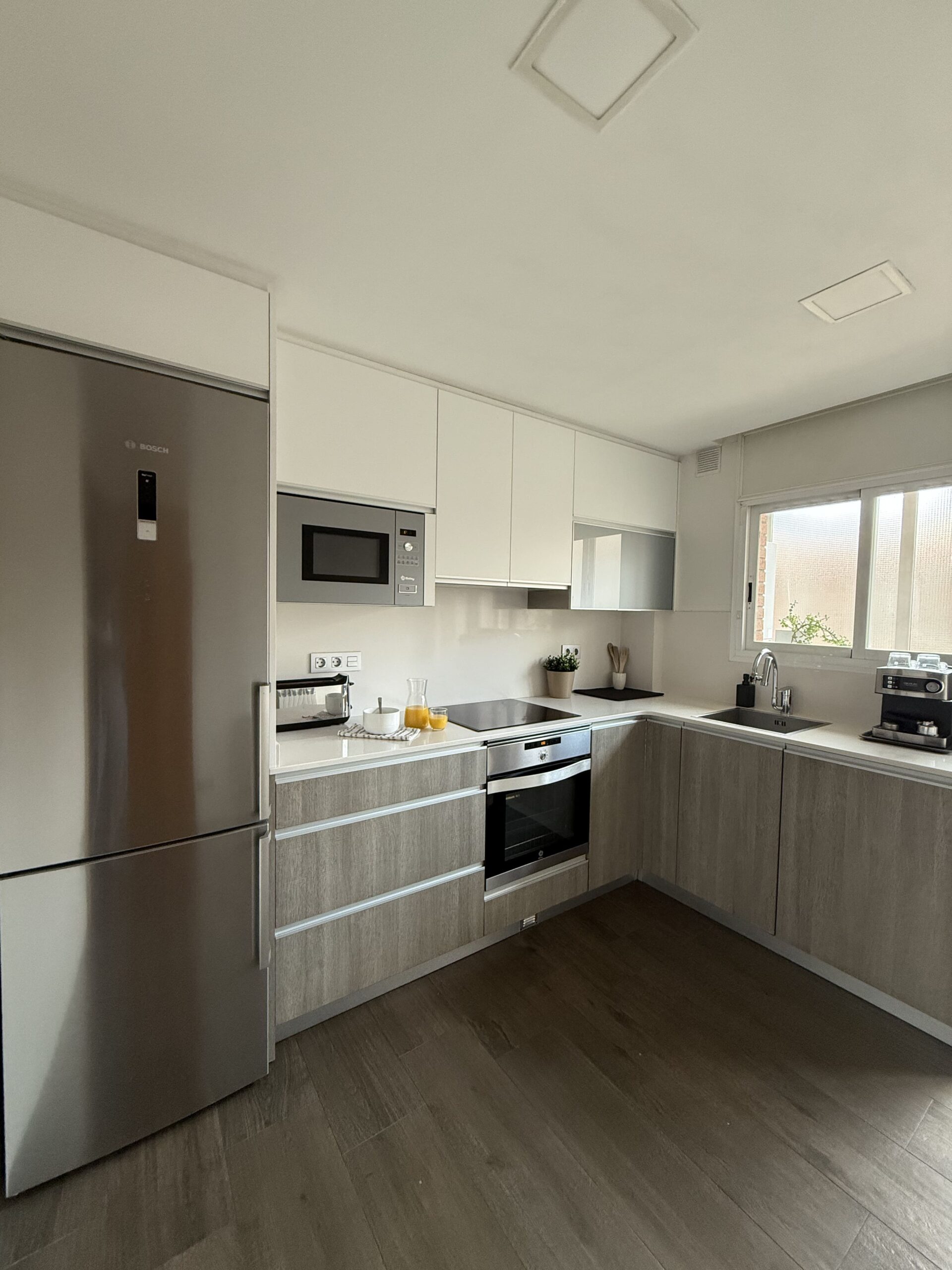 Private single room in a 105 m² apartment. The owners have decorated the apartment with great taste. It has 4 bedrooms in total and 2 full bathrooms. Central heating, air conditioning, ceiling fan in the living room, air distributors in all rooms, Smart TV, internet connection, elevator, two balconies, and a gallery. Fully equipped kitchen (oven, fridge, induction hob, microwave, toaster, coffee maker, etc.) and washing machine.