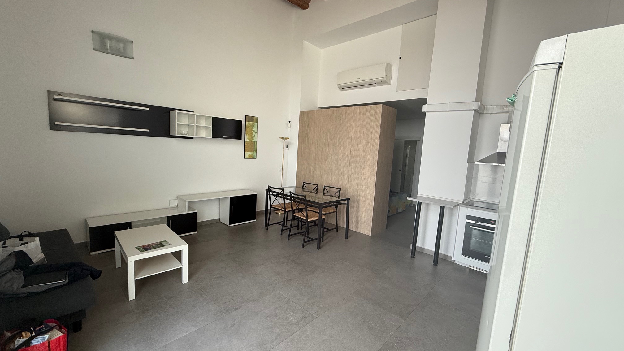 Acogedor loft de 55 m², en un solo ambiente, que combina salón, comedor, cocina y dormitorio (la cama está separada del resto por un armario). Cuenta además con baño nuevo independiente con plato de ducha.